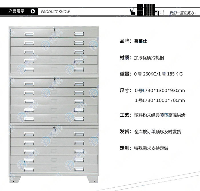 洛陽弗萊仕金屬制品有限公司是一家集科研,設(shè)計(jì),制造,銷售,安裝,售后服務(wù)于一體的鋼制家具專業(yè)生產(chǎn)企業(yè)。公司現(xiàn)擁有包括工業(yè)安防柜,實(shí)驗(yàn)室家具,校用設(shè)備,密集架,鋼柜,不銹鋼定制六大核心系列,能夠滿足學(xué)校,醫(yī)院,大型國企的一站式配套工程。公司自成立以來,始終堅(jiān)持“高科技、高質(zhì)量、高服務(wù)”的方針,以專業(yè),獨(dú)特的創(chuàng)新理念,在全國知名的鋼制家具生產(chǎn)基地迅速崛起。產(chǎn)品主要銷往北京、上海等全國20多個省市.得到了廣大用戶的肯定和贊賞,享有較高的聲譽(yù)。經(jīng)過不斷努力及完善,公司擁有先進(jìn)的生產(chǎn)設(shè)備,強(qiáng)大的規(guī)模生產(chǎn)能力,并擁有一批高素質(zhì)的生產(chǎn)管理人員和技術(shù)人員,及合理健全的售后服務(wù)體系,并把追求卓越、引領(lǐng)時尚的奮斗目標(biāo)貫穿于生產(chǎn)整個過程。