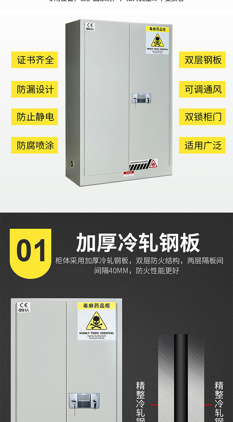 顏色:灰白色 規(guī)格:4加侖(高560*深430*寬430)15L 用途:適用于存儲鴉片、海洛因、杜冷丁、甲基苯丙胺(冰毒)、大麻、可卡因等麻醉藥和毒品。
